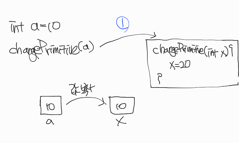 a=10, x=10이 된다. (x가 20인것보다 a가 x에게 10이라는 값을 전달한 게 먼저다) 2. Primitive 메서드 안에서 x값을 변경