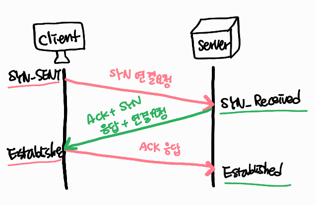 SYN_RECEIVED : 연결 요청을 받은 상태 / ESTABLISHED : 연결됨 4-way handshake(연결해제)